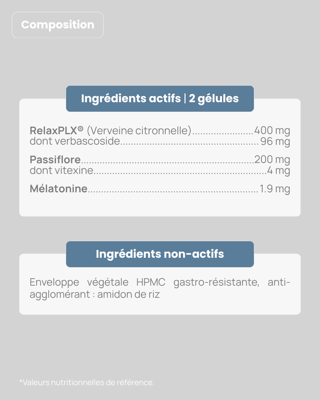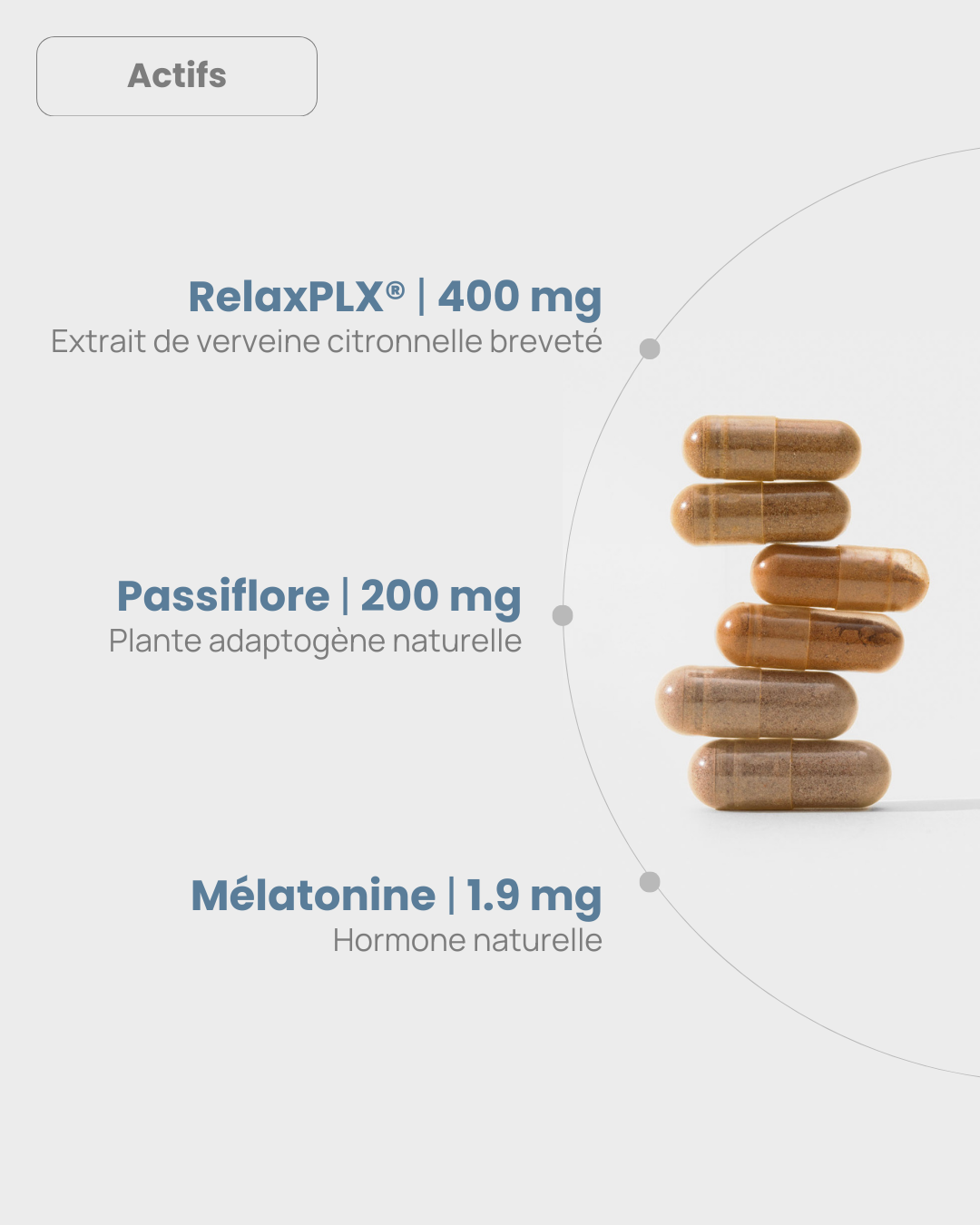 • RelaxPLX® - Extrait breveté de verveine citronnelle (400mg) | Dont verbascoside (96 mg)