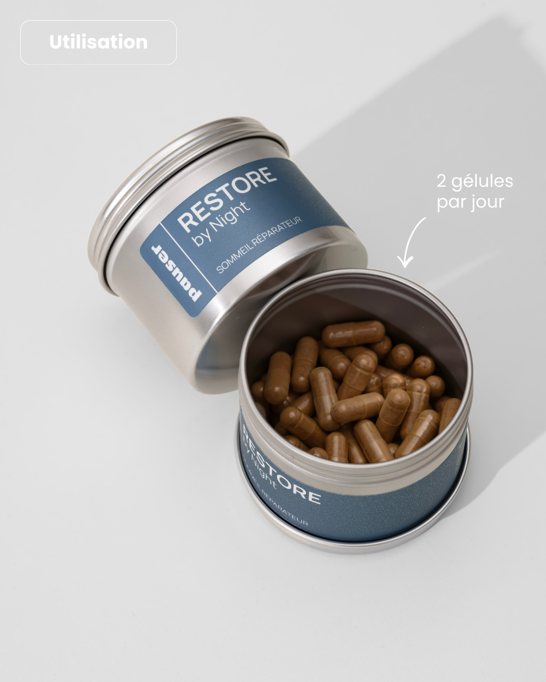 • RESTORE by Night agit sous 30 minutes pour faciliter l’endormissement dès la première prise. Les effets sur la qualité du sommeil peuvent s’installer progressivement.