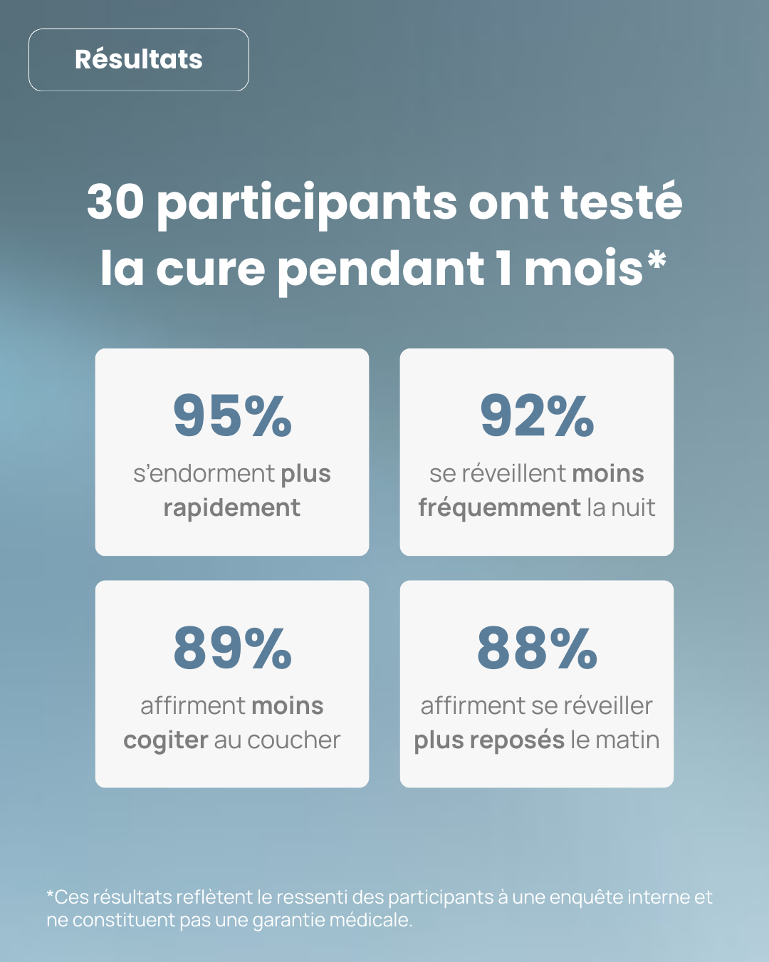 * Note : ces résultats reflètent le ressenti des participants à une enquête interne et ne constituent pas une garantie médicale.